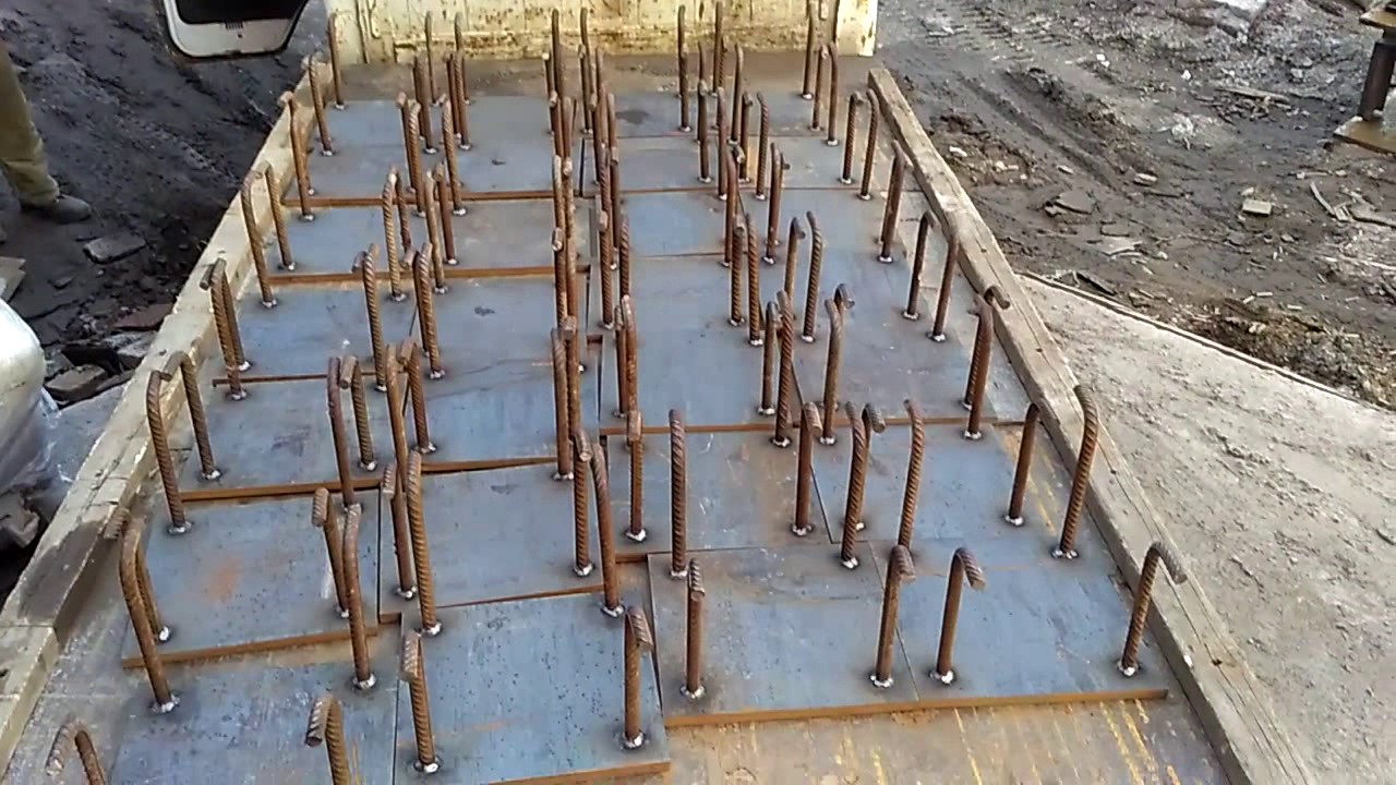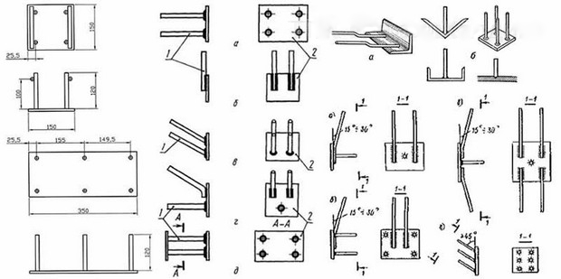 - с приваренными под разными углами (наклонное, параллельное, комбинированное расположение) к пластине анкерами, штырями и пр.;